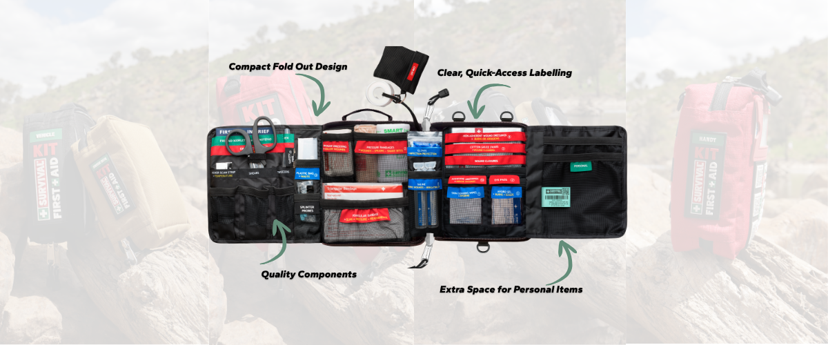 It comes down to who you’re packing for and where you’ll use it. All the kits are compact kits and are great for solo hiking trips or for a family, while larger kits (like the Family First Aid Kit) are designed for 4–5 people and longer adventures. All kits are practical, organised, and built to suit real emergencies, no wasted space or fluff.